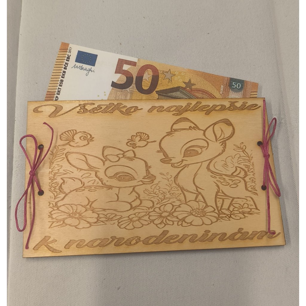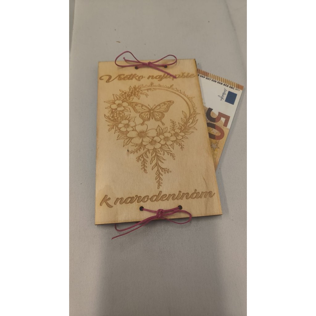 Drevená gravírovaná obálka na peniaze – štýlový spôsob, ako darovať finančný dar s eleganciou a nápadom.