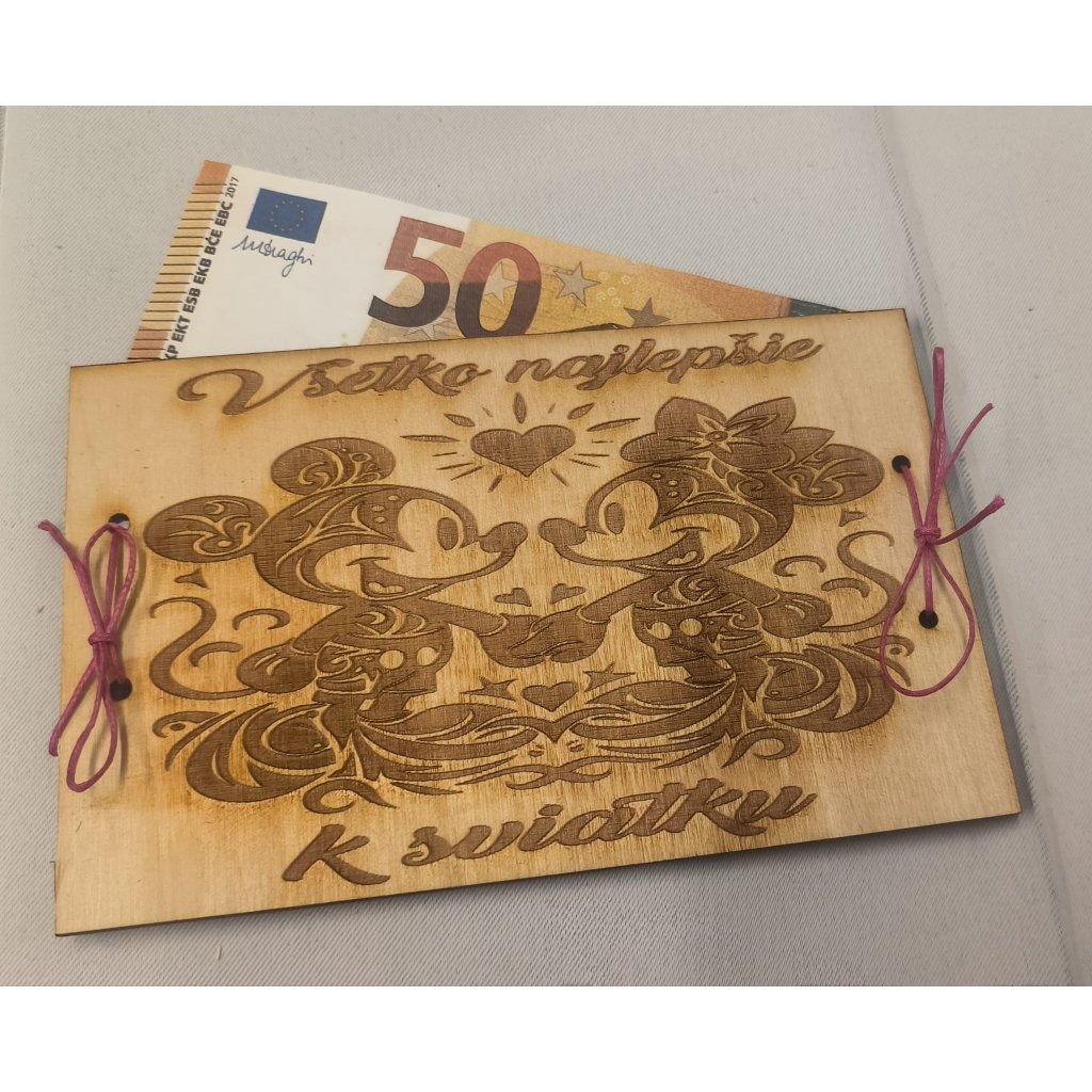 Gravírovaná obálka na peniaze je originálny a estetický spôsob, ako darovať peniaze na svadbu, narodeniny, promócie, krst či inú výnimočnú príležitosť. Vyrobená z kvalitného dreva, ozdobená precíznym gravírovaním – od jemných ornamentov až po personalizované mená, dátum alebo venovanie.