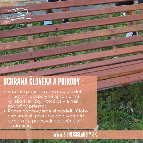 Najväčšou hodnotou projektu je však jeho komunitný rozmer. Spoločná práca vytvorila priestor na vzájomné učenie sa, rozhovory a posilnenie vzťahov medzi generáciami. Každá lavička je dôkazom, že keď sa spojíme, dokážeme vytvoriť niečo trvalé, užitočné a prospešné nielen pre nás, ale aj pre naše okolie. 💚🌱